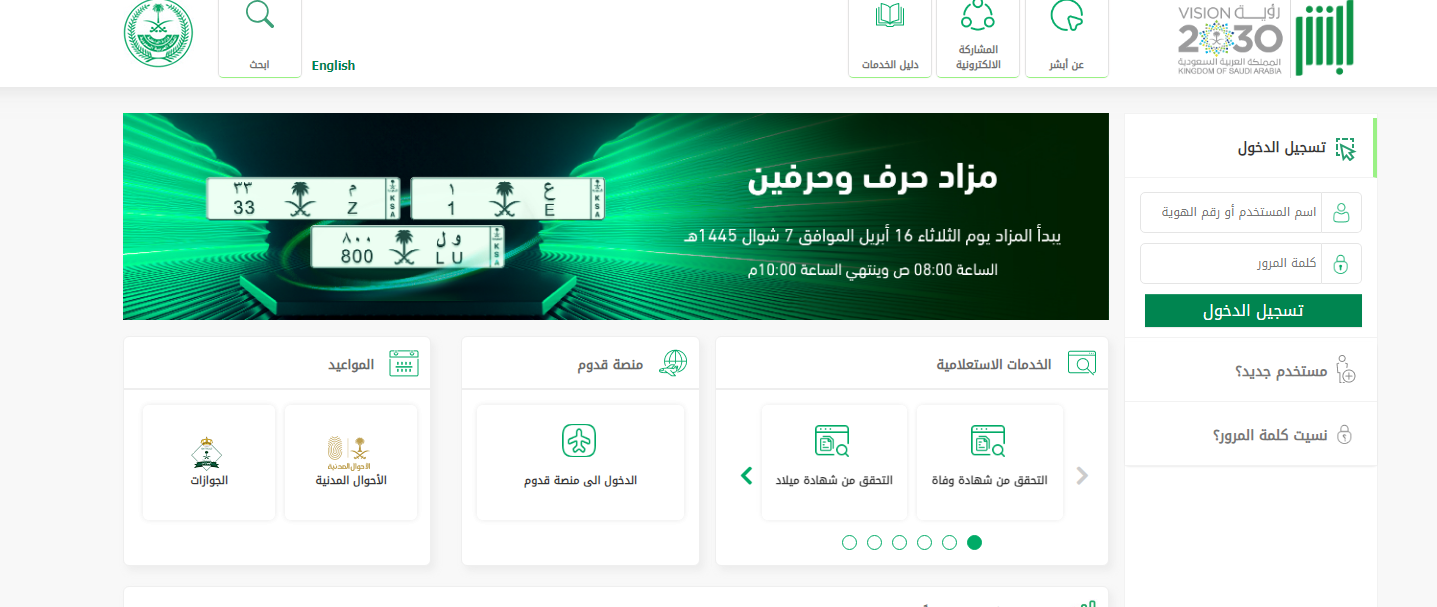 - الذهاب إلى الموقع الإلكتروني الرسمي لمنصة أبشر " من هنا ".