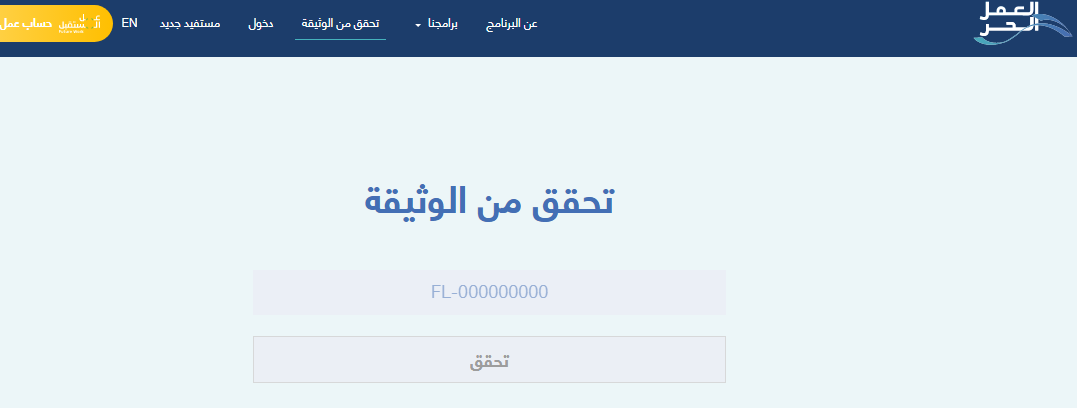 - قم بالدخول إلى المنصة الرسمية الإلكترونية العمل الحر.